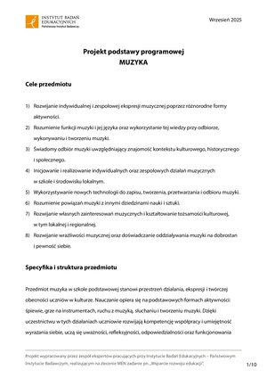 2025, Projekt podstawy programowej. Muzyka, Instytut Badań Edukacyjnych. Państwowy Instytut Badawczy, Warszawa (s. 10, PDF149 KB)